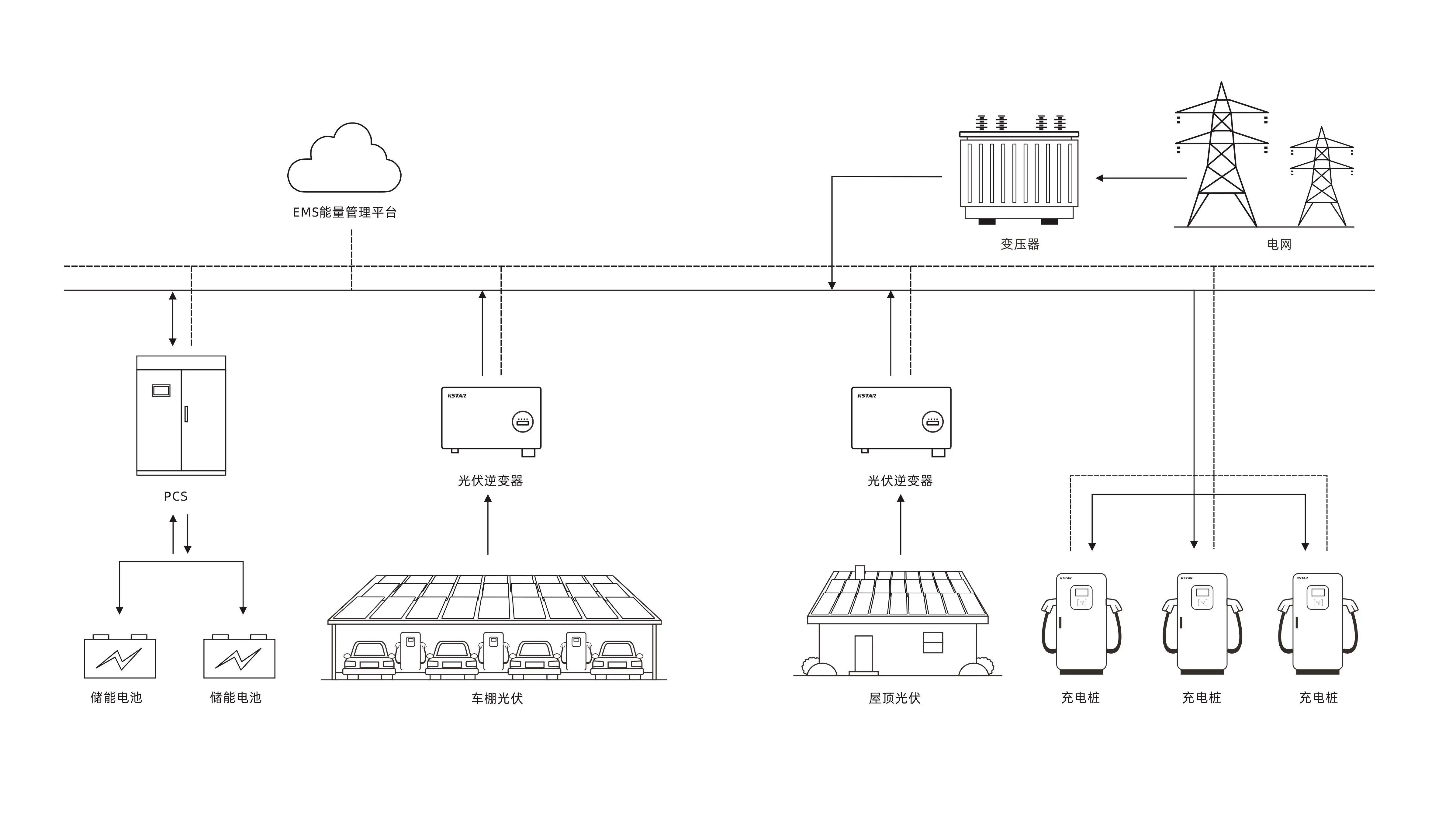 正如江苏苏北的光储充一体化充电站所示,智慧能源EMS系统将整个厂区分布式光伏、储能系统、充电桩优化控制,实现供需平衡、削峰填谷以及综合能源效益最大化。