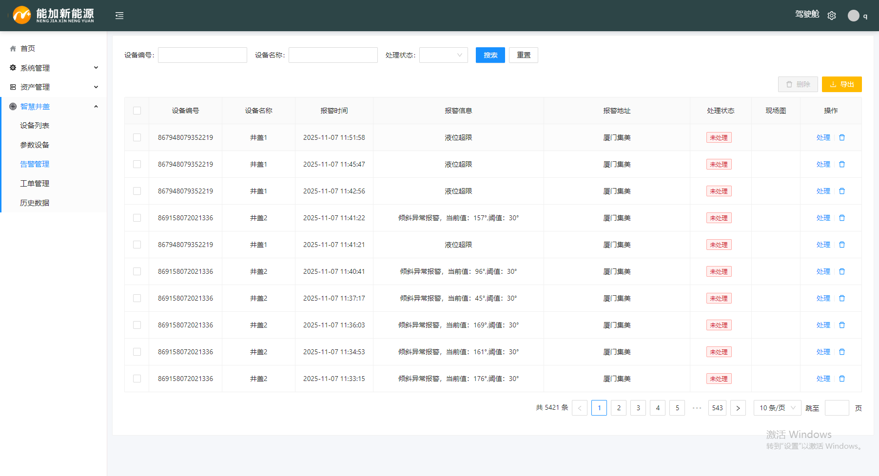 如上图,报警信息以弹窗形式实时推送,并支持语音提示,确保管网异常第一时间被关注。