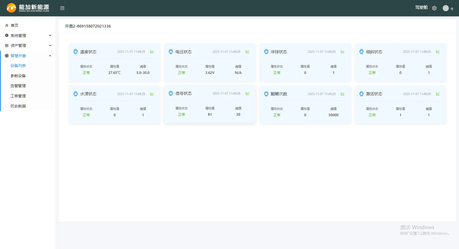 上图展示了云平台的监控大屏,可实时显示管网井盖的在线、报警状态,帮助管理者“一图掌握”全局。